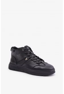 Trampki Męskie Z Eko Skóry Big Star OO174021 Hi-Poly System Czarne