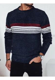 Férfi csíkos pulóver, tengerészkék Dstreet WX2281