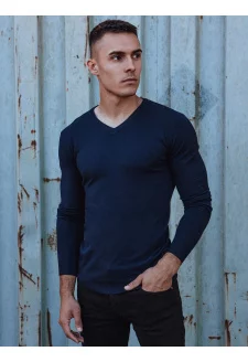 Férfi sima V-nyakú pulóver tengerészkék Dstreet WX2220