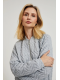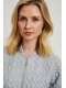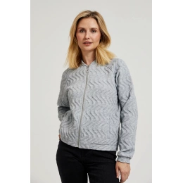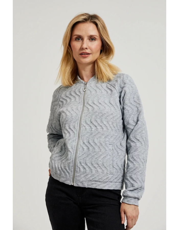 98%POLIESTER, 2%ELASTAN Szara bluza damska o intrygującym wzorze żakardu, wykonana z wysokiej jakości poliestru. Posiada praktyczne kieszenie oraz wygodny ściągacz na dole i na rękawach. Długi rękaw, stójka z okrągłym zapięciem na zamek. Idealna na chłodniejsze dni, zapewniająca wygodę i swobodę ruchów. Ta bluza jest idealna na wiele okazji, zarówno na co dzień jak i na spotkania ze znajomymi. Doskonale sprawdzi się zarówno w połączeniu z jeansami, jak i spódnicą lub eleganckimi spodniami. Dzięki swojemu oryginalnemu wzorowi będzie idealnym uzupełnieniem każdej stylizacji casual.